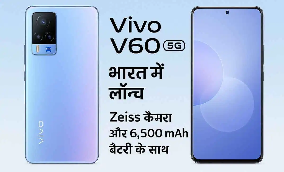 स्मार्टफोन बाजार में आज एक नया और दमदार फोन जुड़ गया है। Vivo V60 5G को भारत में आधिकारिक रूप से लॉन्च कर दिया गया है। यह फोन अपने शानदार डिज़ाइन, दमदार कैमरा सेटअप और लंबी चलने वाली बैटरी के लिए चर्चा में है। खास बात यह है कि इसमें Zeiss ब्रांड के कैमरे दिए गए हैं, जो फोटो और वीडियो की गुणवत्ता को एक नया स्तर देते हैं। इसके अलावा, 6,500 mAh की बड़ी बैटरी और दमदार प्रोसेसर इसे एक पावरफुल डिवाइस बनाते हैं।